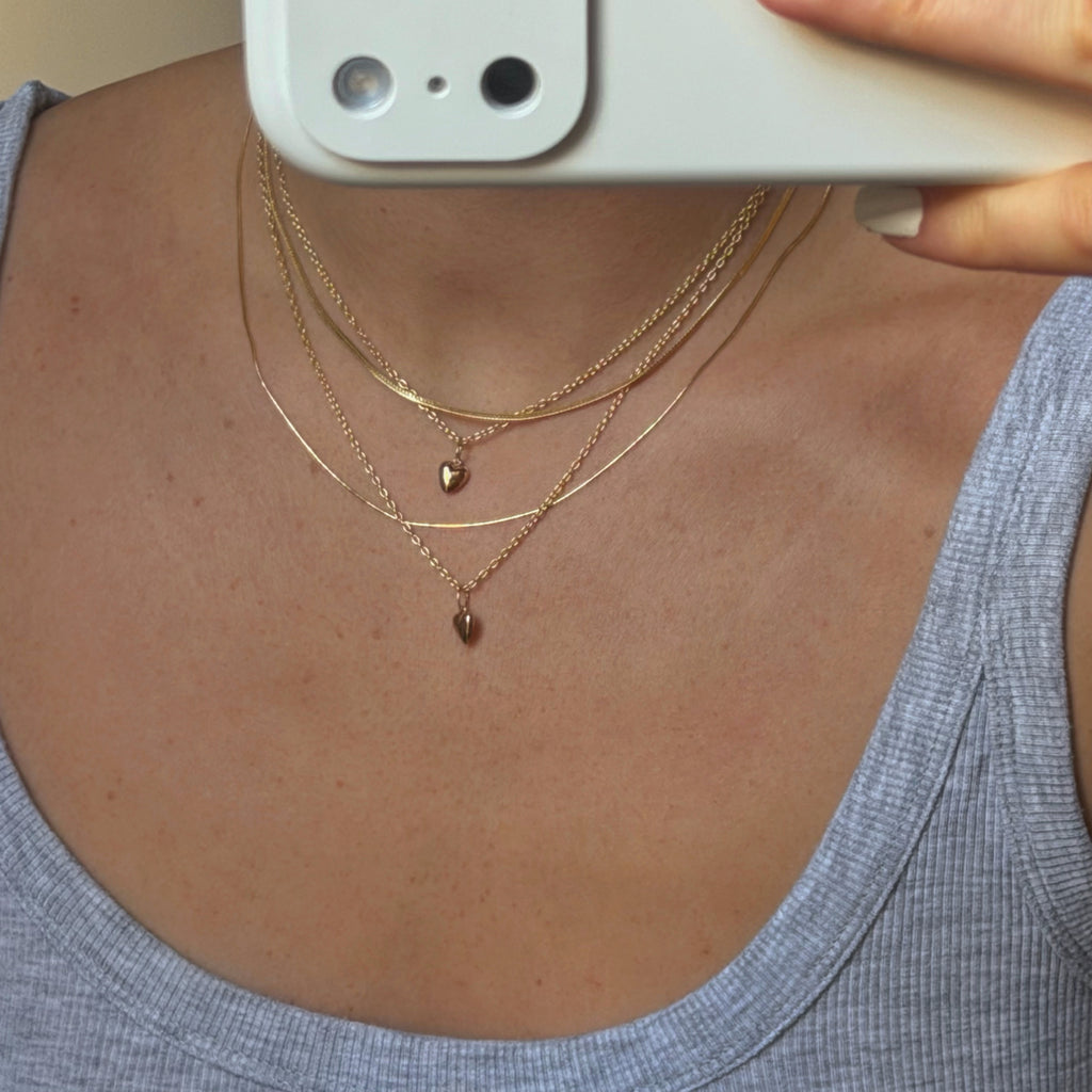 The sweetest addition to your jewelry lineup, now made with a solid 14k yellow gold charm!! The Amour necklace may speak French but it relates to all languages (and necklines). A classic, intimate piece with a modern look. Made for the lovers.